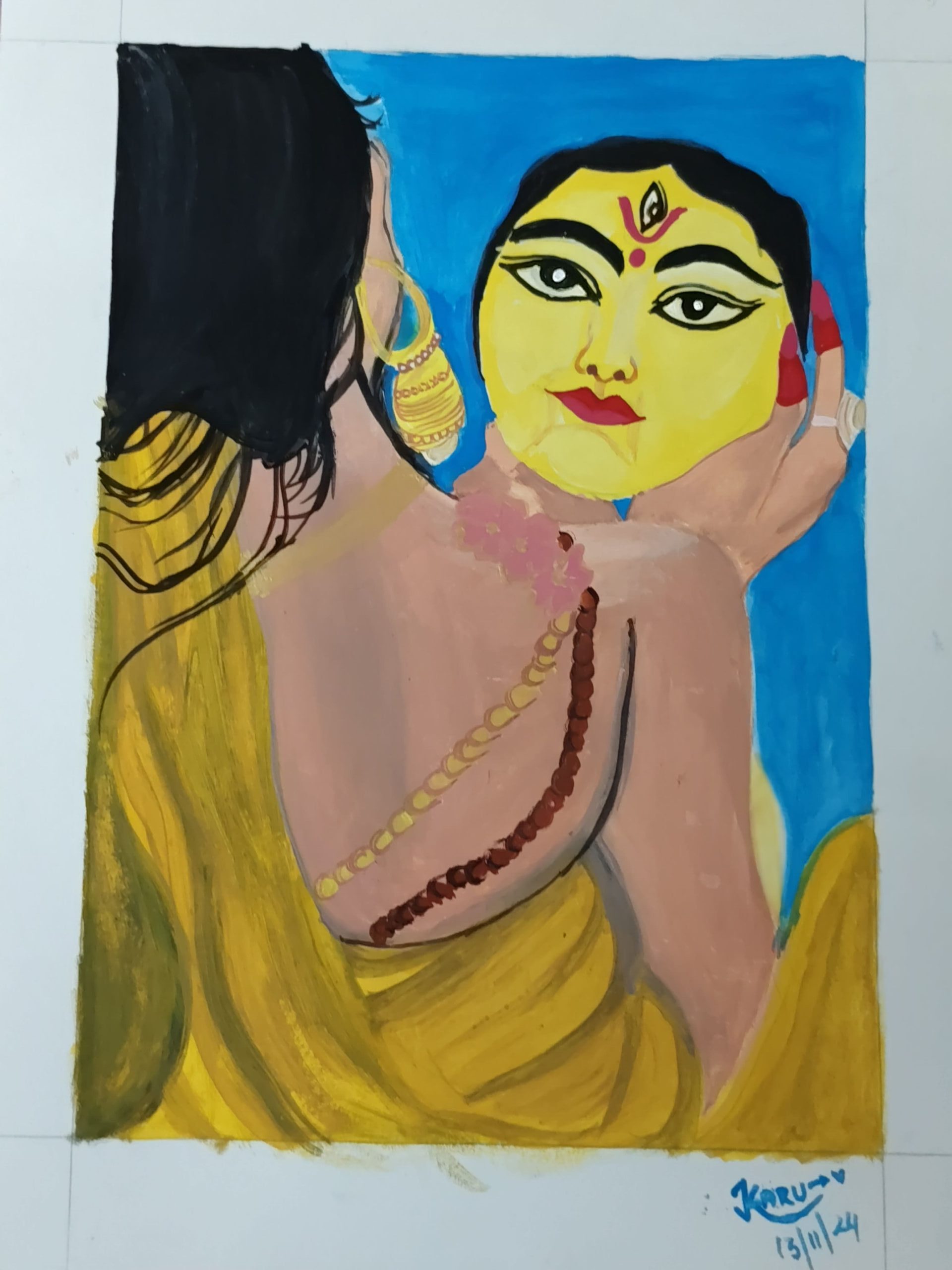 I am a passionate artist currently pursuing my Bachelor’s in Fine Arts at Sri Annai Kamakshi Music and Fine Arts college. With unwavering support from my parents, I have dedicated myself to exploring and mastering diverse artistic mediums, including acrylic, gouache, glass painting, pencil shading, and digital art.