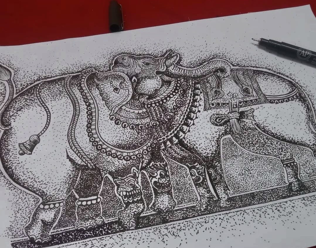 I wanted co-relate art with education system, luckily I was trained as kindergarten teacher from The PSBB Millennium school , Chennai. There I learned the importance of art in education, how it fosters creativity and enhances self-expression. This is how I used the opportunity from Sri Annai Kamakshi Kalaikudam to conduct online/offline classes to children.